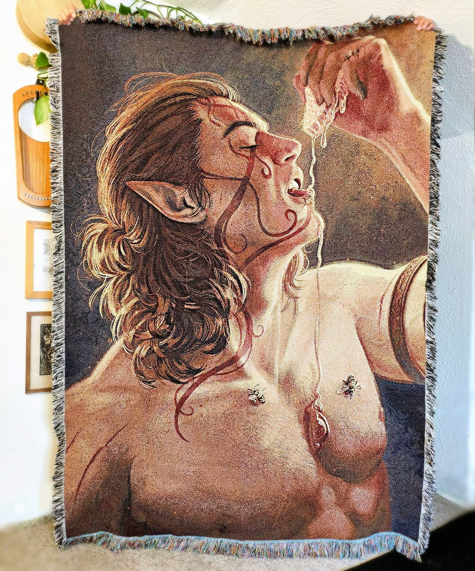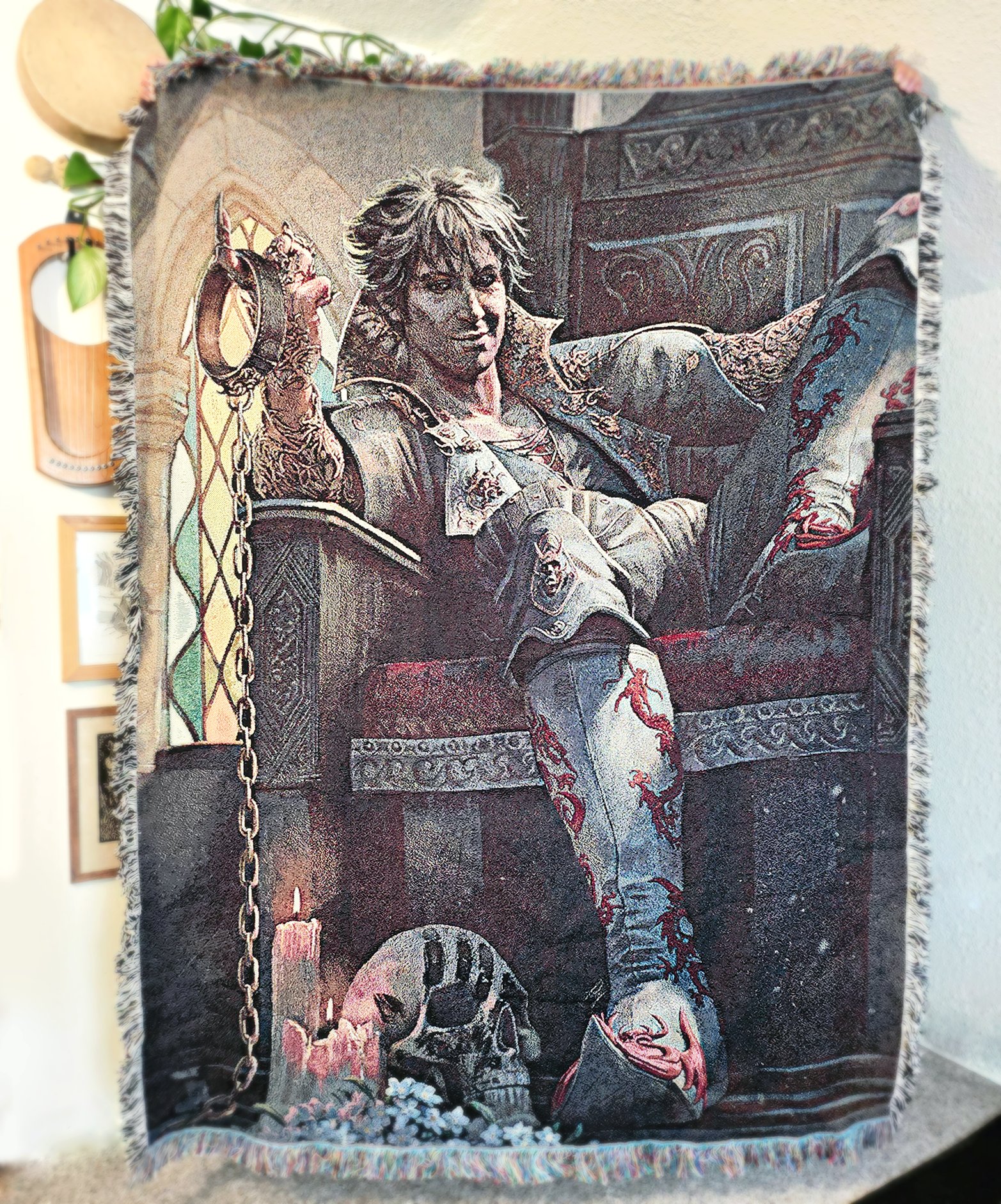 A 72"x54" woven cotton blanket run featuring some of our favorite BG3 characters. These are quite soft and make wonderful throw blankets, or you can hang them on the wall for display! The design is woven into the fabric, not printed! Use the drop-down menu to pick from the list.