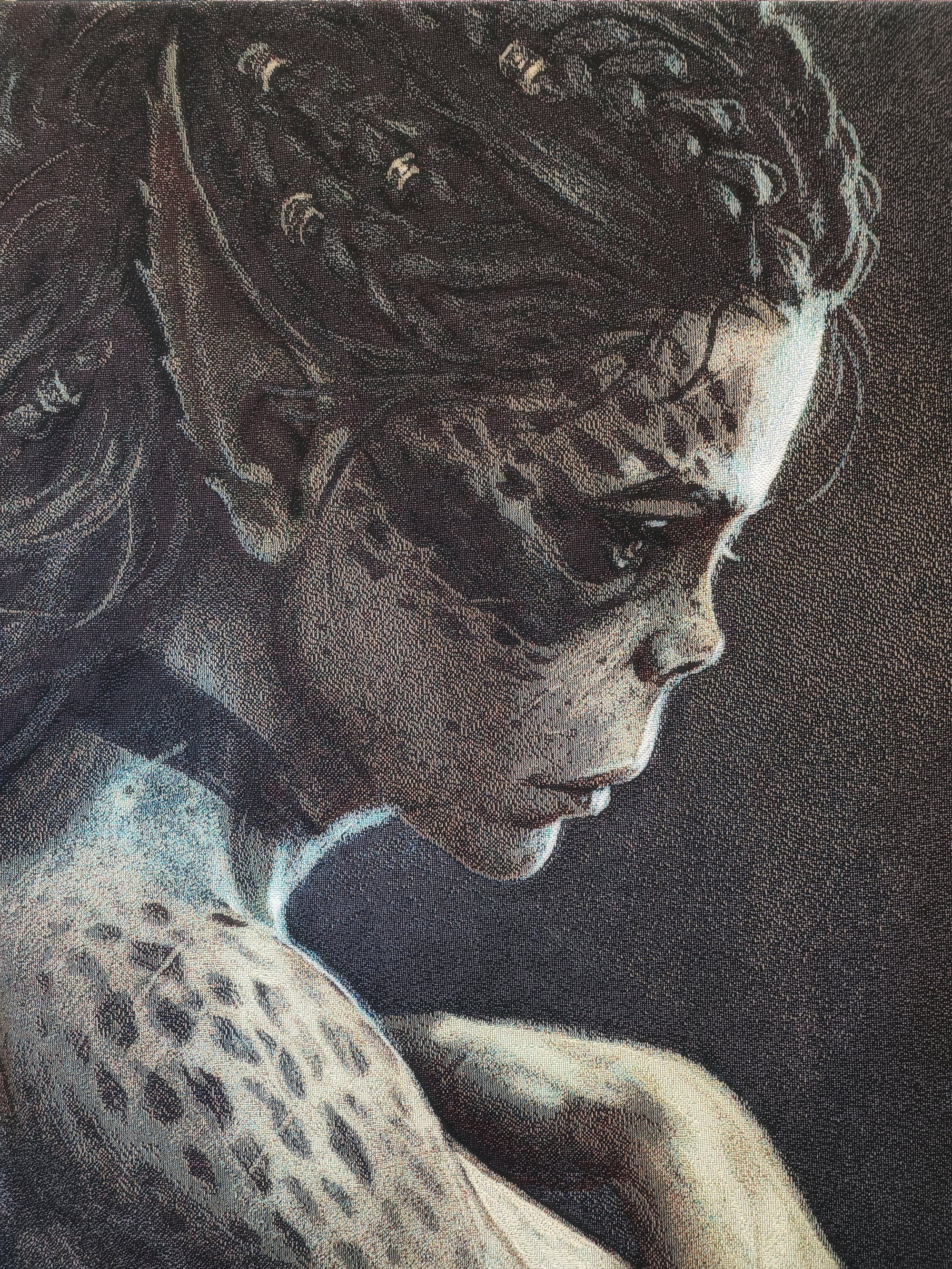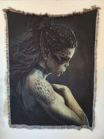 A 72"x54" woven cotton blanket featuring my Lae'zel painting, "Strife." These are quite soft (like a new quality cotton t-shirt) and make wonderful throw blankets, or you can hang them on the wall for display! The design is woven into the fabric, not printed!